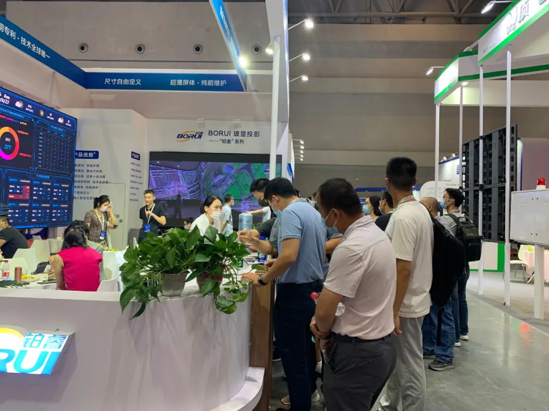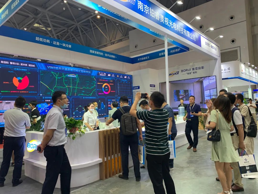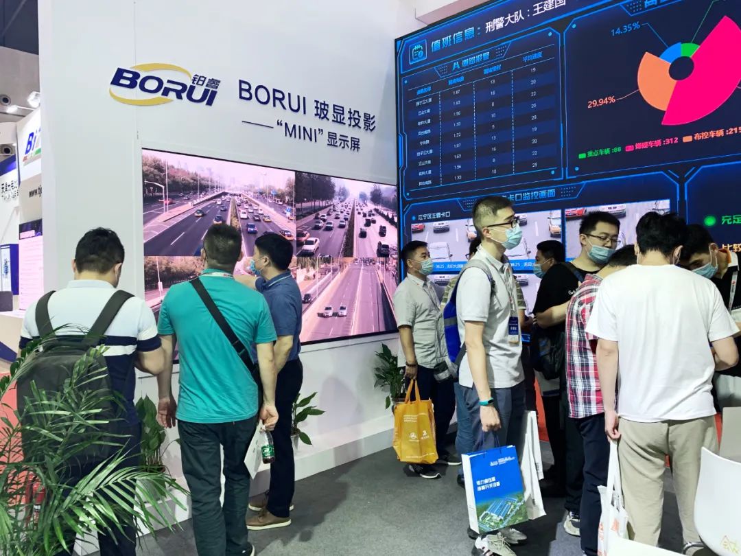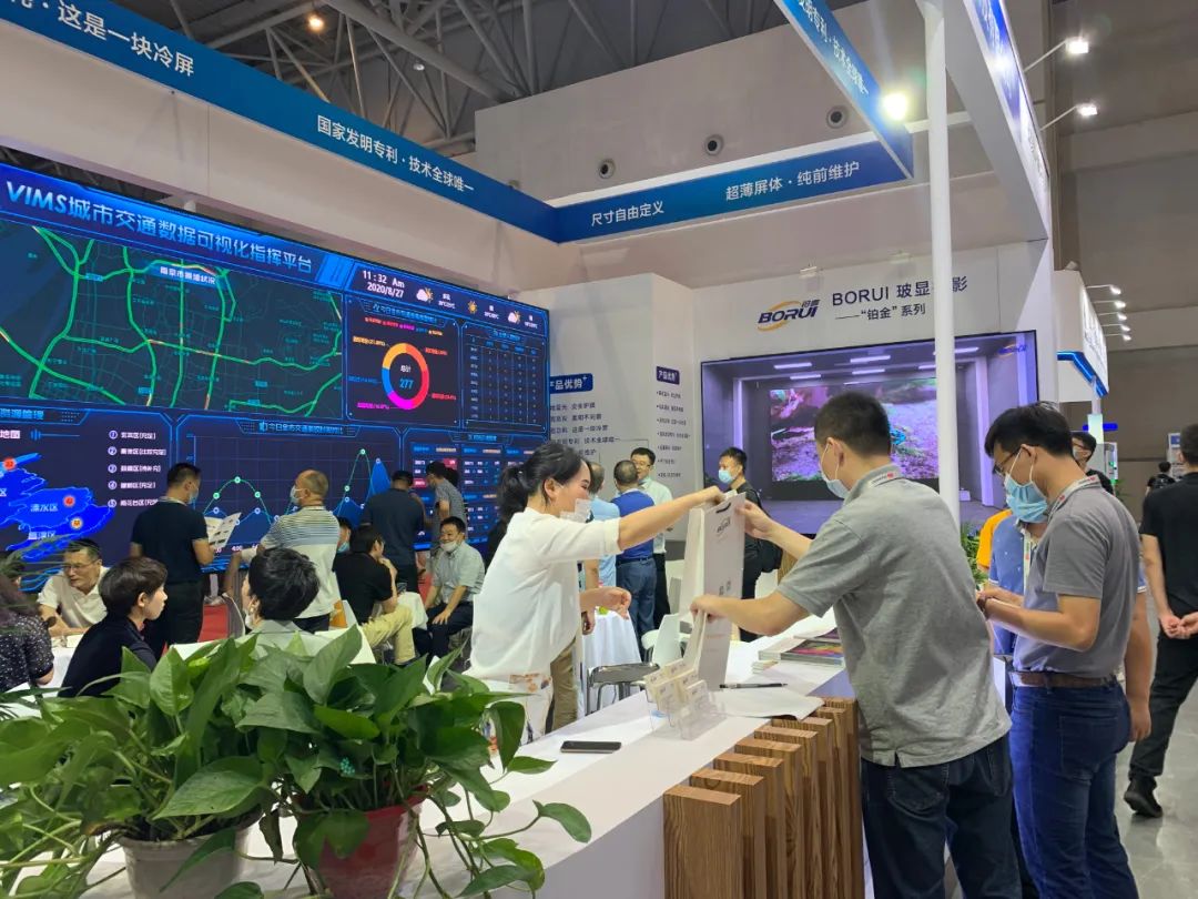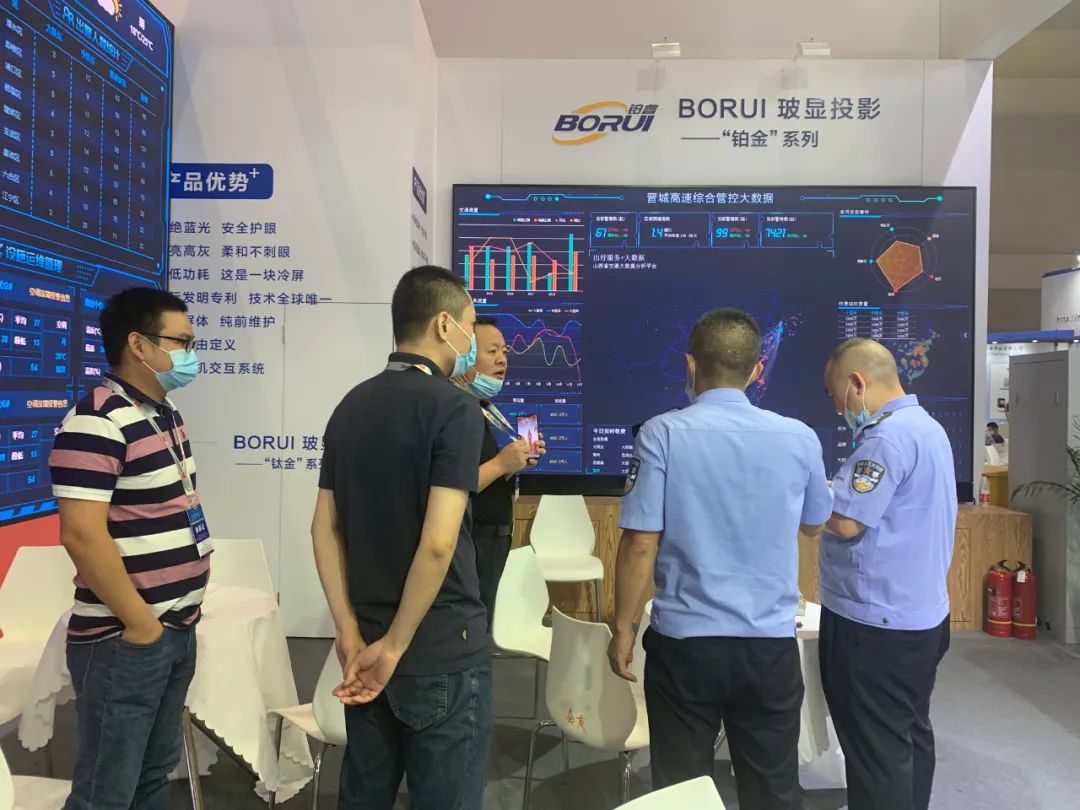 重慶市公安局科信處的領導也蒞臨鉑睿光電展位進行參觀指導,技術人員為他們就不同系列的每塊屏都做了詳盡的介紹。